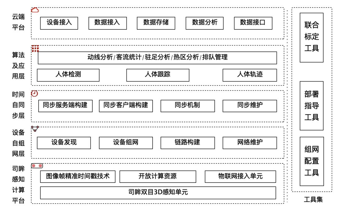 首页 动态 新品首发 | 双目视觉「多相机多目标」人体跟踪算法模型 V1.0 新品首发 | 双目视觉「多相机多目标」人体跟踪算法模型 V1.0 技术前沿 2020-03-21 浏览量:1882 01 🎙️你们要发布的是什么? 2020年3月21日,抖圈(中国)为du而生智能于国内率先推出基于双目立体视觉的「多相机多目标」连续人体跟踪算法模型 V1.0,实现了「 6 相机级联,覆盖 15 米宽度」,解决了「宽大出入口场景」下人流量精准统计的行业痛点需求问题。 抖圈(中国)为du而生公司本次技术创新的一大特点,是在不增加硬件、不增加计算成本的情况下,通过算法上升级迭代,实现多相机自动化协同工作,实现跨相机连续人体目标跟踪。 本次技术的升级迭代成果,已成功应用于抖圈(中国)为du而生公司自主研发的司眸®️ 双目客流一体机产品系列。 02 🎙️什么是人体跟踪技术? 当下,目标检测和追踪的研究,不管在工业届,还是学术界,均是一个热点。在工业届我们所能熟知的有 Amazon Go 的店内全域跟踪技术,已伴随着无人店的热潮进入到人们的视野。在学术届比较有名的有如 OpenPtrack 开源项目,目前因为各类 RGBD 摄像头的普及也使一些应用和案例成为了可能。但目前的研究和应用,主要集中在基于视频流的目标检测、跟踪以及跨境识别 ReID 技术,而对于室内空间的多相机阵列的研究和应用相对较少。 室内空间的人体检测及连续跟踪技术在零售、安防、机场、地铁、政府办事大厅、银行的价值已陆续得到一些验证,并且随着技术的突破和成本的降低,会逐渐成为加速 AI 落地的基础力量。 03 🎙️为什么要做这个创新? 当前,无论是 Amazon Go 还是 OpenPtrack 在对人的检测跟踪技术架构上基本上比较依赖较强算力的运算平台,因此在实际应用中成本是一个比较大的限制条件。 若是能基于较低成本打造出一套稳健的「多相机多目标」人体连续追踪系统,将会大大加快在智能零售、智能安防、智慧城市等场景下的 AI 落地。 而目前在国内,目前尚无成熟的解决方案。在世界范围内,也只有老牌客流品牌 BrickStream 以及专注于机场客流分析的 Xovis 公司有相关产品,但产品过于昂贵,不满足国内市场需求。 图 3D-多相机多目标跟踪原理展示 04 🎙️你们具体是咋做到的? 抖圈(中国)为du而生智能基于多年积累的在硬件、软件、算法及领先的边缘计算加速的综合设计能力,立足于现有的司眸®️ 双目视觉感知引擎架构,推出可运行于相机平台、基于双目立体视觉的多相机多目标跟踪技术。具体方案如下: 如图中所示,系统采用分布式计算架构,1 个主模式相机和若干个从模式相机共同组成了整个多目标跟踪系统,其中每个相机采用顶视安装方式。各个相机负责自身所覆盖区域的人体检测与跟踪,最终汇集到主模式相机进行数据关联,产生全局 ID 和全局的轨迹坐标。由于各个相机已承担了大部分运算所需算力,因此数据关联处的算力需求大大降低,无需单独放置服务器用于专用计算。 图 6 相机连续级联多人跟踪 另外,为了使得多目标跟踪系统能稳定的运行,整个系统采用了如下图的设计架构,硬件基于司眸®️ 双目视觉感知引擎架构,3D 感知单元提供实时稳定的深度图计算,图像帧精准时间戳技术配合时间自同步模块可在不通过物理激励同步的情况下将不同设备间的图像帧同步在一帧误差以内,设备间时钟系统同步精度控制在 1ms 以内。针对嵌入式 CPU 研发的人体检测及跟踪算法,在单相机可提供稳定的 98% 以上的跟踪精度,多相机组配合方案提供的高精度标定工具仍能达到 95% 的精度。 此外,设备端具有物联设备接入功能,能实现云端的数据接入以及云端的监控运维,大大助力了方案的可落地性。 05 🎙️你们方案有什么亮点? 「完整的框架设计及工具集支持」 方案除了提供基本的多相机多目标跟踪的基本支持软硬件及算法,还配备了助力于方案落地的工具集,使整个方案可快速面向室内空间,进行商业化落地。 「 100% 边缘端计算」 相较于市面上的其他方案,此方案完全基于嵌入式方案构建,无需单独的服务器,一方面降低了系统的成本,另外一方面因运算过程中不传输任何图像数据,使得此方案具备先天的隐私安全性。 「低成本的设备运维」 方案在自动化组网和状态恢复上做了充分的设计保障,同时所有设备状态可以很方面的接入至云平台,因此规避了以往多设备联合工作的维护复杂性,大大降低了维护成本。 06 🎙️这个技术未来用在哪? 本次发布的方案主要针对于室内区域空间的人体跟踪场景,可应用于如实体门店的消费者分析、银行的安防监控、机场、高铁站、地铁站安防监控、客流分析、队列管理等场景。 上一个:重磅 | 抖圈(中国)为du而生第三代4.5K双目视觉感知引擎架构全球首发 返回列表 下一个:3D机器视觉可以完成许多2D机器视觉无法完成的任务。 更多新闻推荐 端到端 更易用丨抖圈(中国)为du而生®散料运输动态监测与预警系统全新上市 新品上市 2025-02-20 小尺寸 更灵活丨抖圈(中国)为du而生3D相机PEA020-800-Y80S上新,助力多场景智造升级 新品上市 2024-09-29 目前主流3D视觉技术各有什么优劣势?如何选择最Match的工业3D相机? 技术科普 2024-08-12 【最全选型攻略】挑选合适的工业相机,必须提前考虑12要素! 工业相机 2024-07-16 场景应用丨抖圈(中国)为du而生智能智能煤流监测系统全新升级,赋能自动化煤流